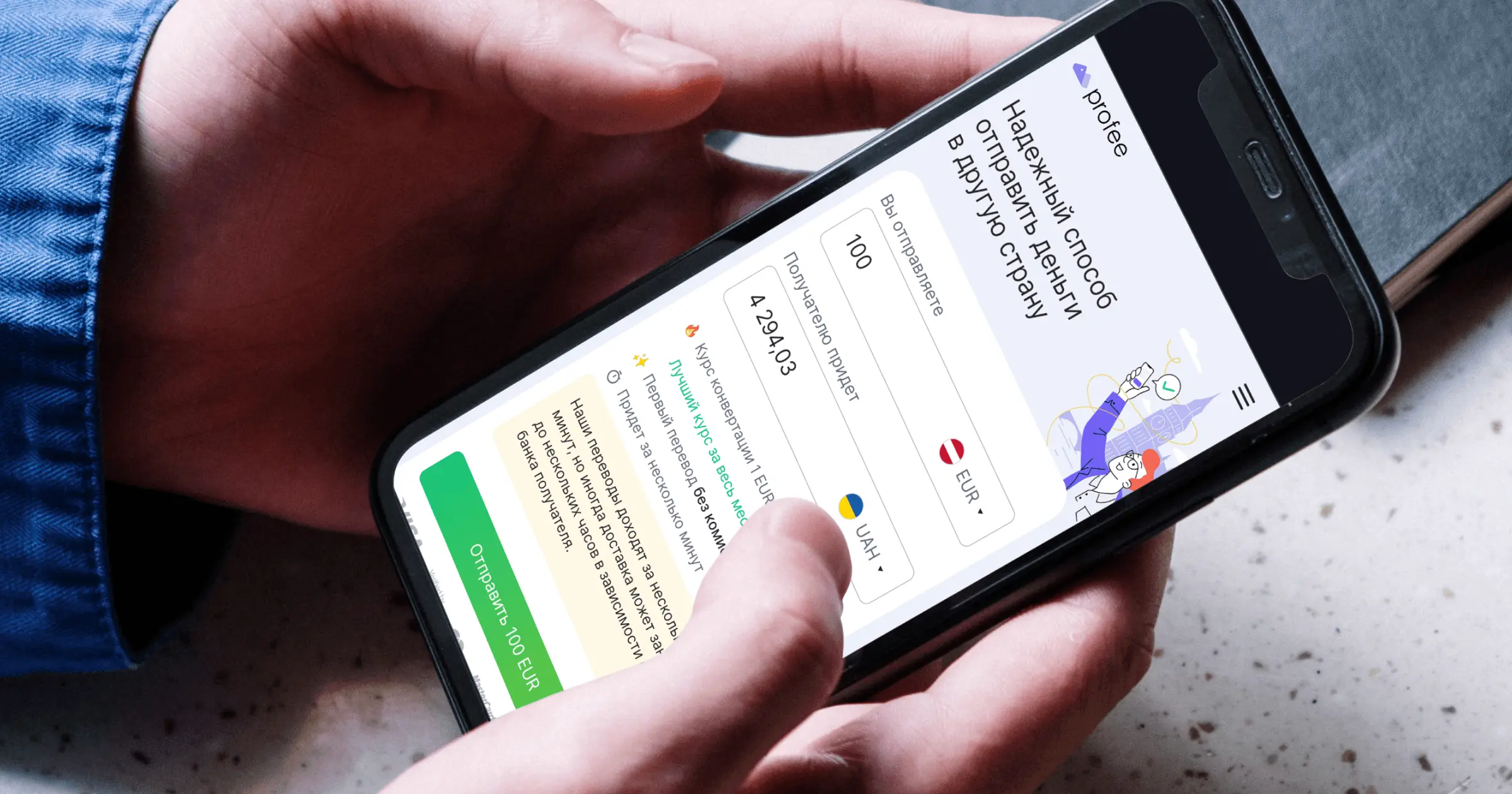 Через мобільний додаток: виберіть валюту, суму та підтвердьте операцію.